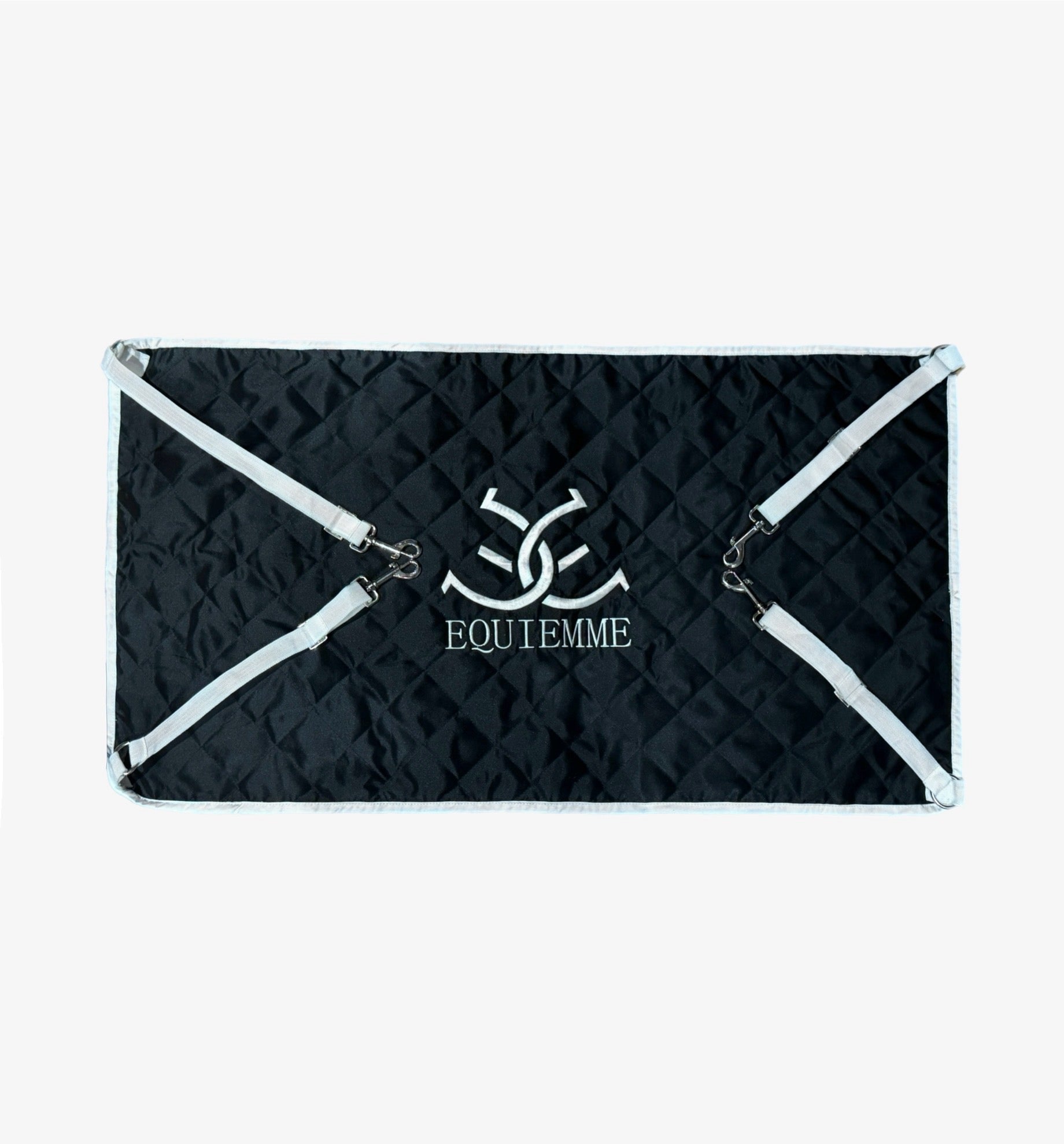 Elegante e funzionale, il cancelletto chiudi box EQUIEMME è un accessorio perfetto per dare un tocco di stile al proprio box e renderlo immediatamente riconoscibile. Realizzato in un raffinato nero con bordi bianchi, presenta il logo EQUIEMME ricamato al centro per un design distintivo.